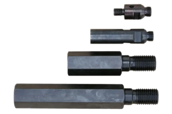 Diamond core drill extension rods available in multiple lengths with 1¼″ and ½″ connections.