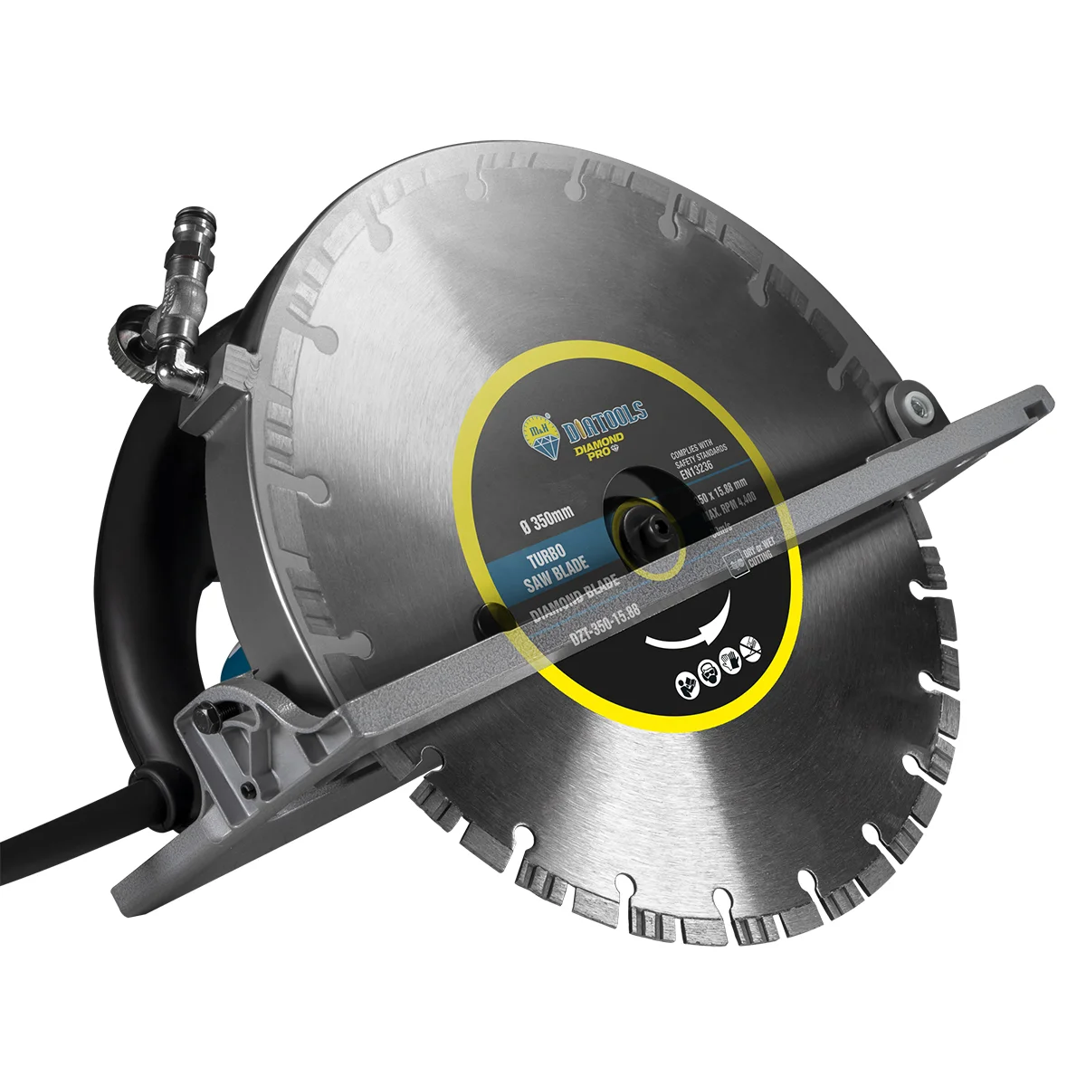 This lightweight wall saw is designed exclusively for wet cutting. The machine features a water inlet with a Gardena-type coupling, allowing easy connection to a standard water hose for effective cooling and dust control. Powered by a strong 2100 W motor, it delivers reliable performance for heavy-duty cutting applications.