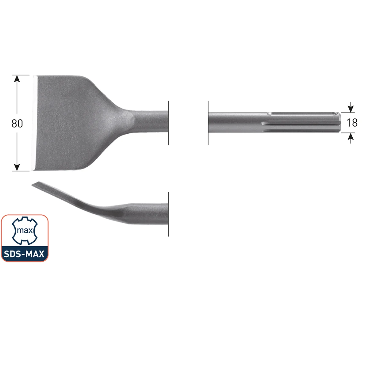 SDS-Max Curved Tile Chisel, 80 × 300 mm