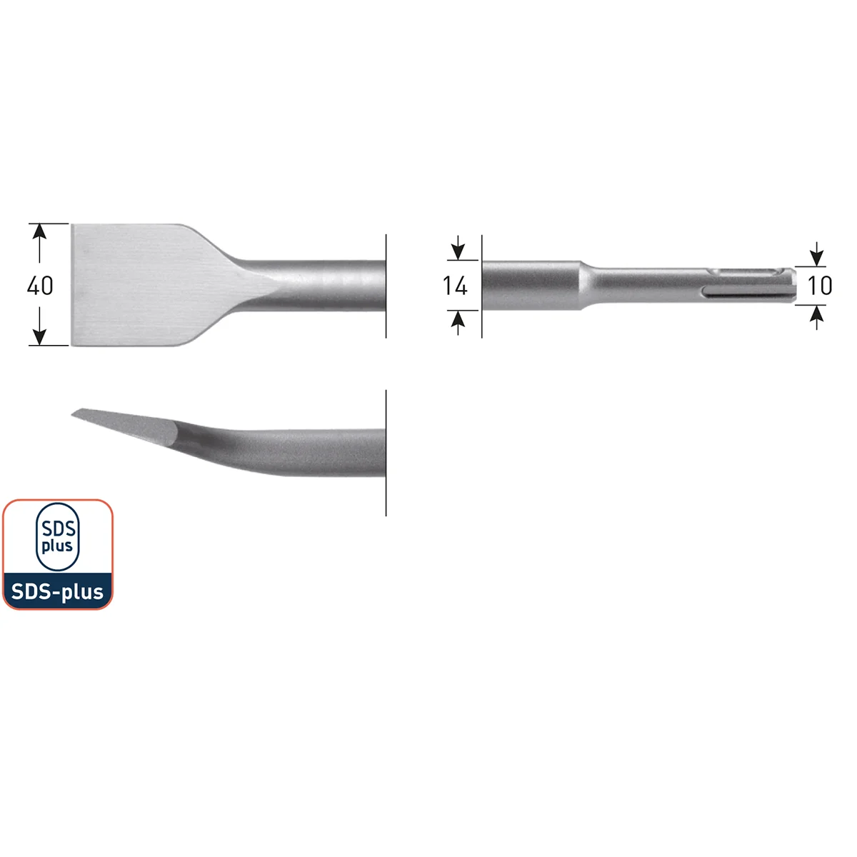 SDS-Plus Bent Spade Chisel, 40 × 250 mm